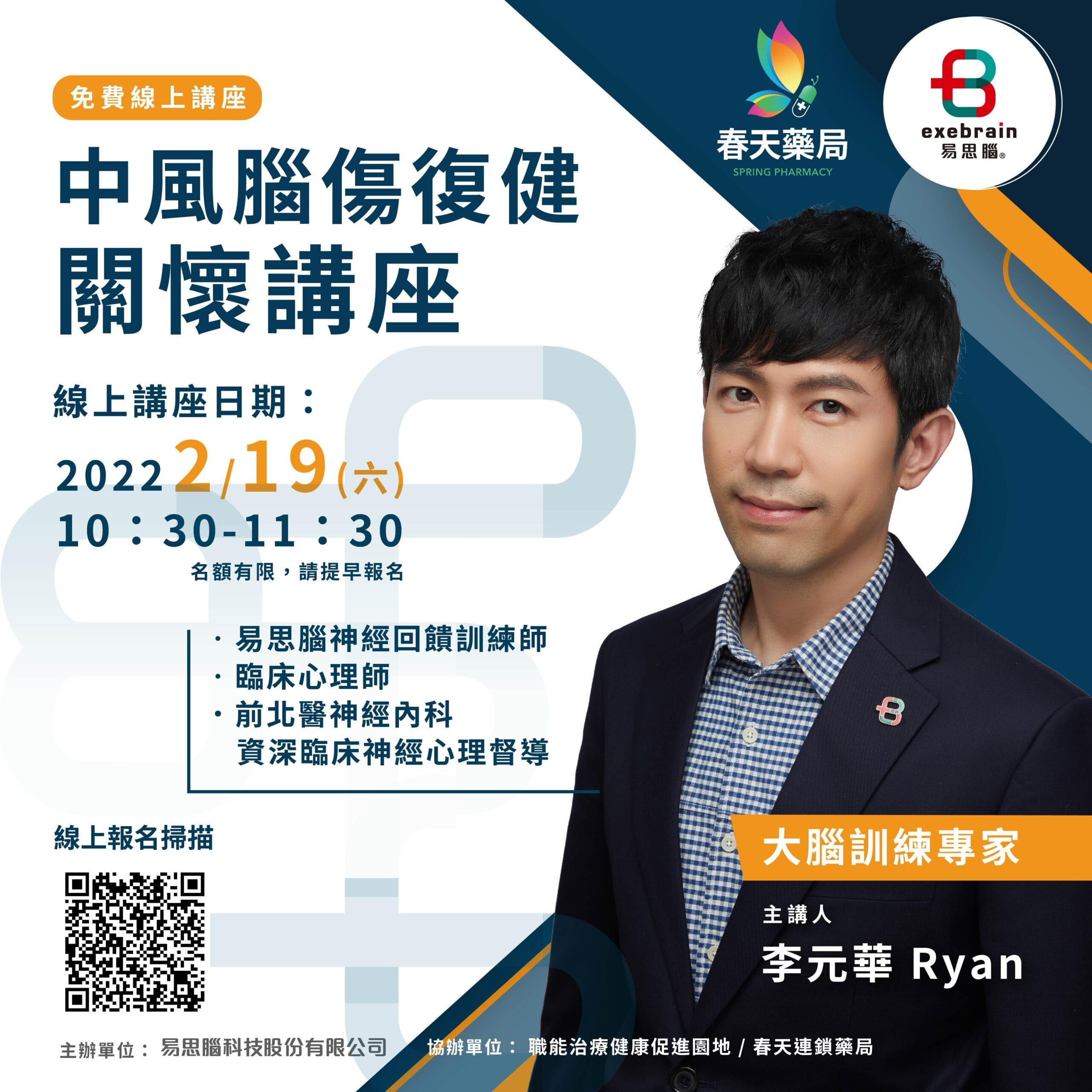 【2/19】中風復健線上講座-利用最新科技,突破復健瓶頸