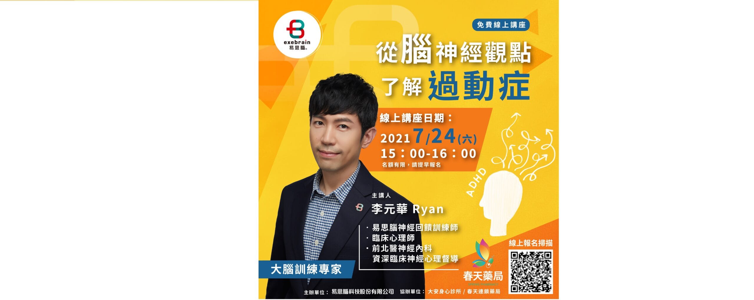 【免費講座】7/24 從腦神經觀點了解過動症