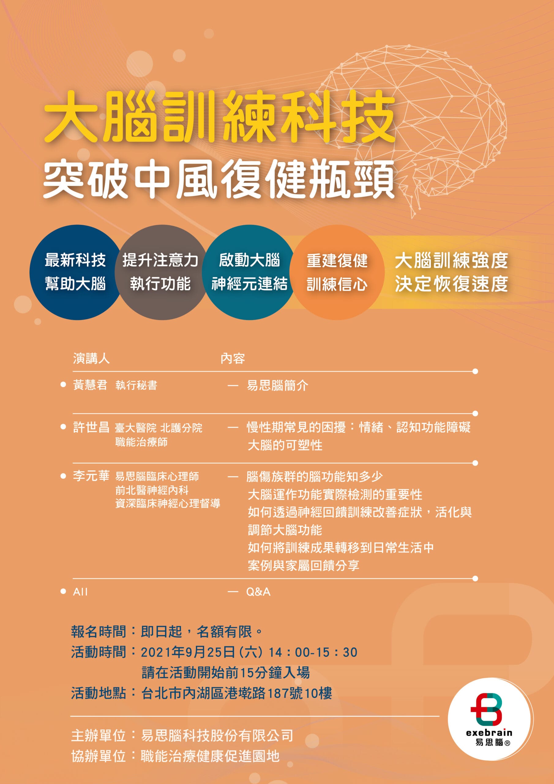 【大腦健康講座】9/25 (六) 突破中風復健的瓶頸