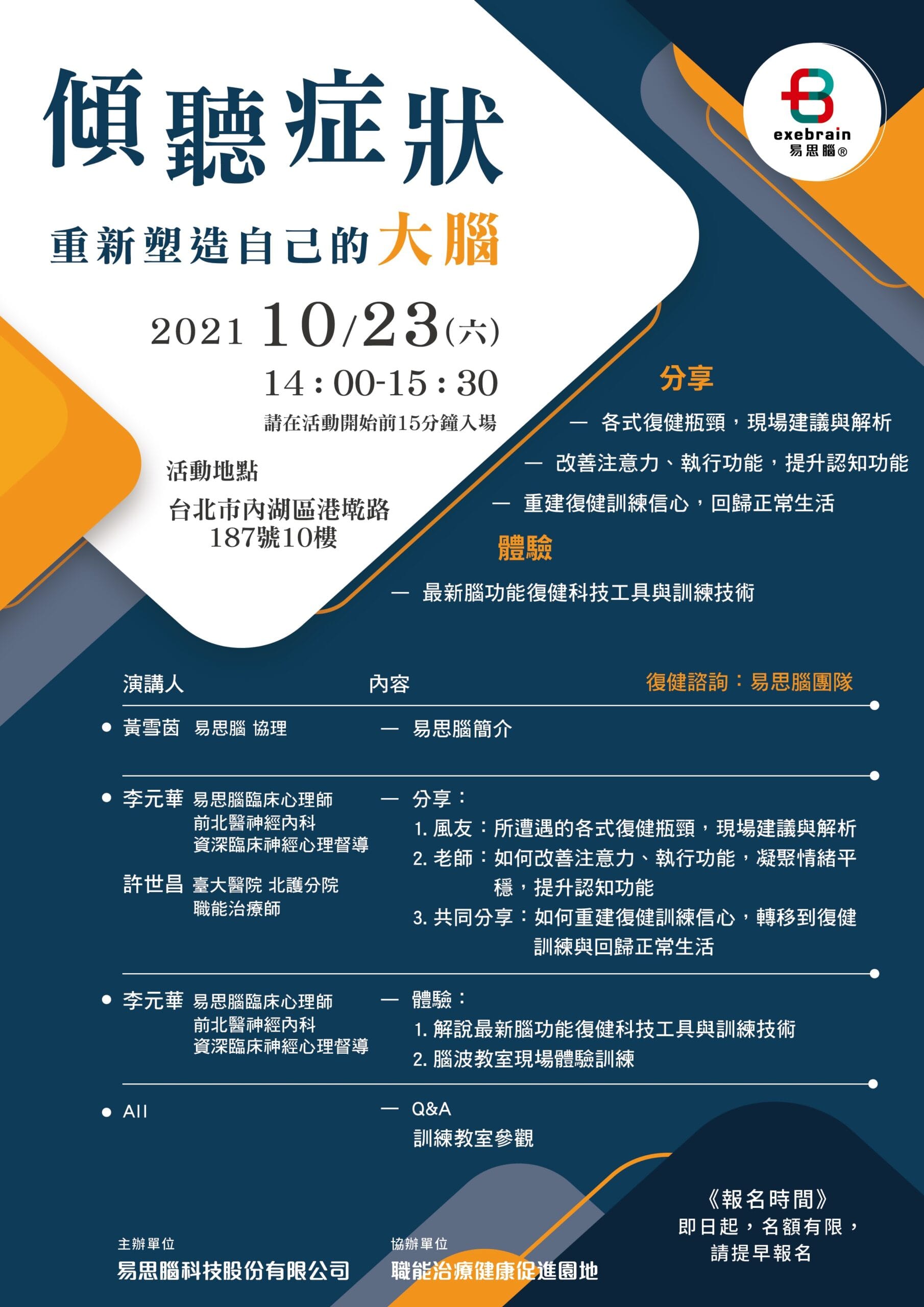 【中風復健關懷講座】10/23(六) 傾聽症狀,重塑自己的大腦