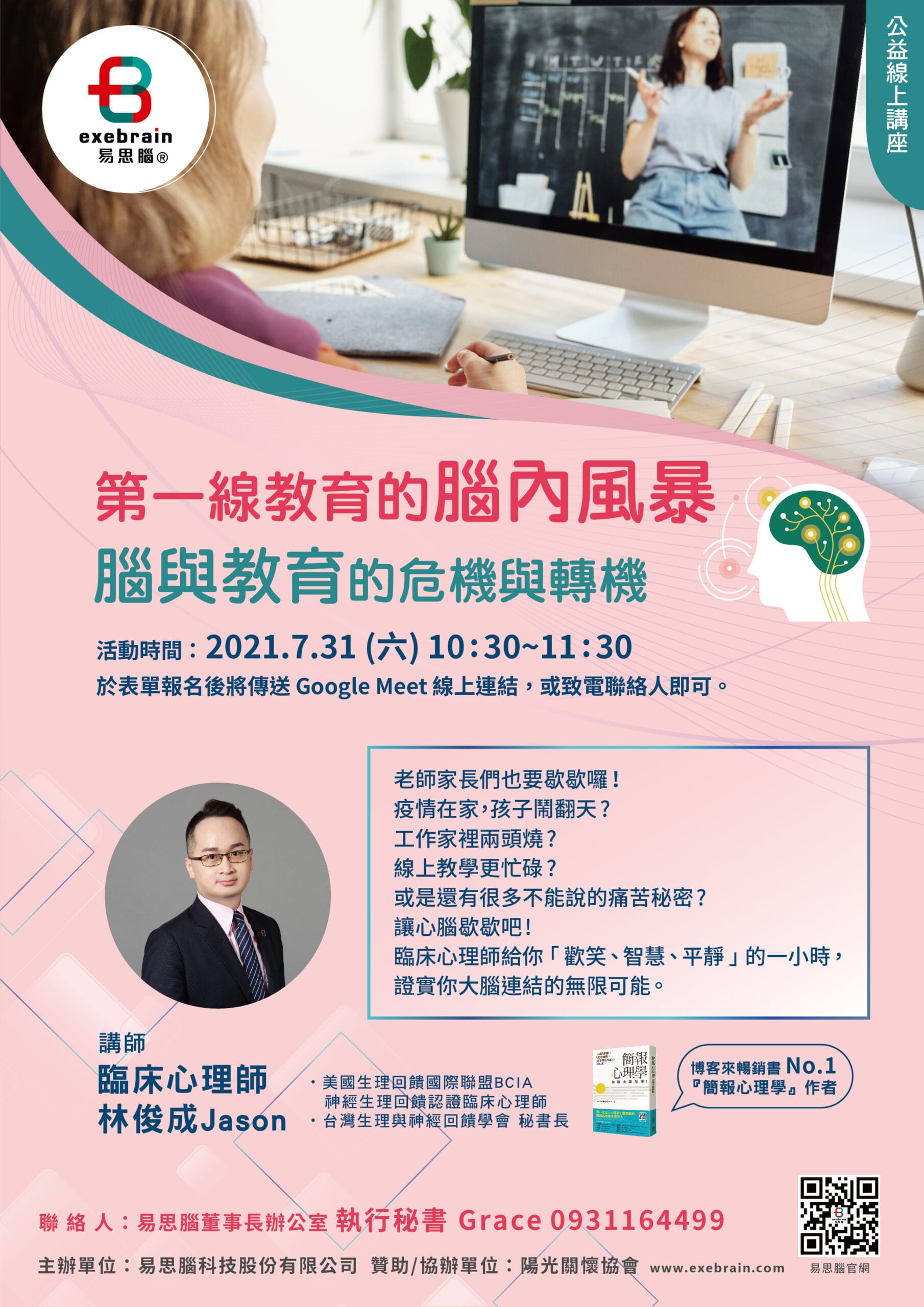 【免費線上講座】7/31 第一線教育的腦內風暴