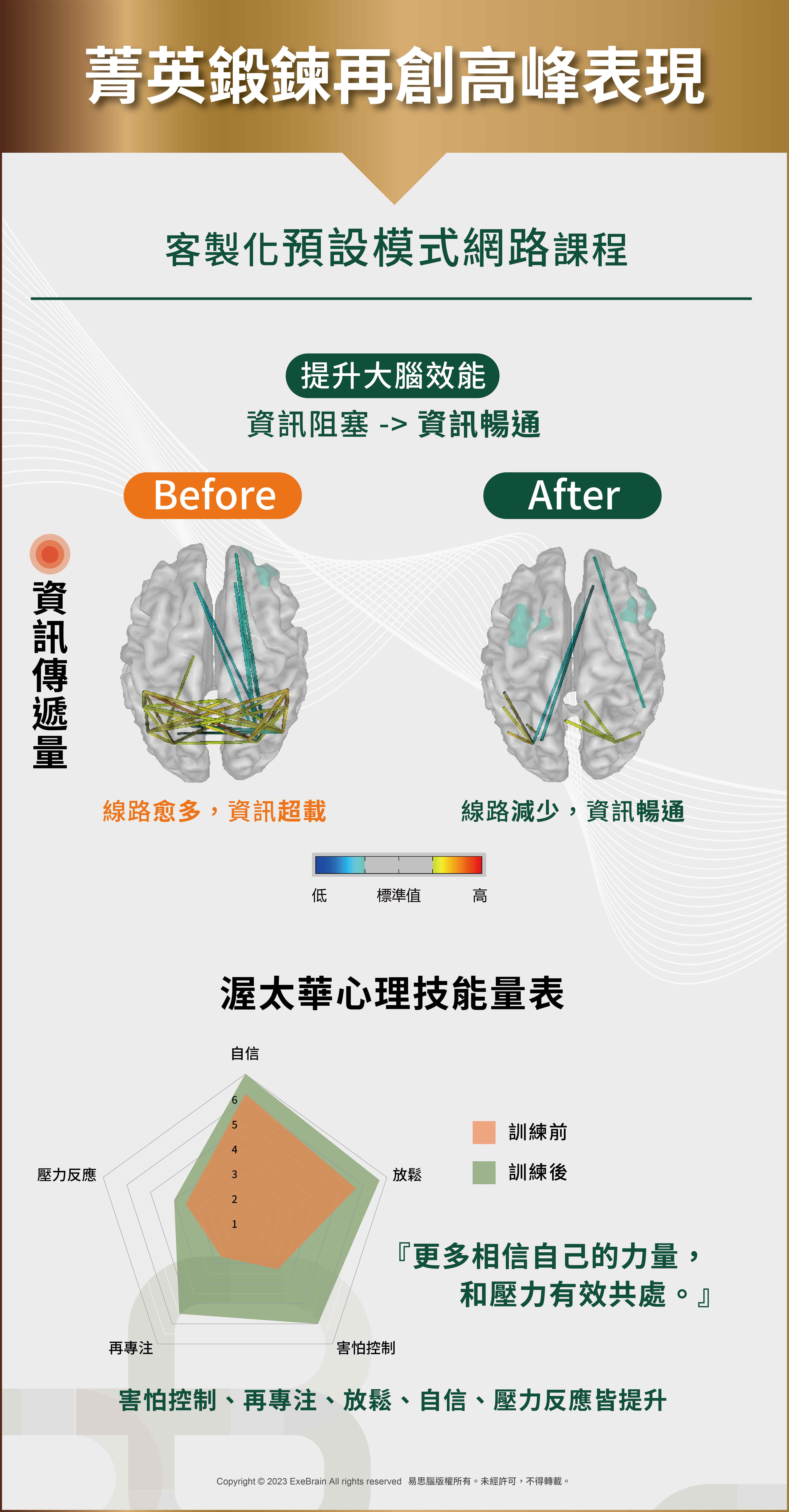 我們使用『預設模式網絡』(註)鍛鍊,能協助到專注和平衡,幫助他可以更加聚焦,祝福他永遠擁有25歲–年輕有活力的心腦。